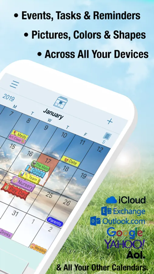 * Google, Outlook, iCal, Yahoo, iCloud - Fast Sync.