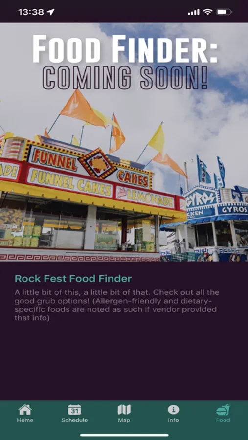 Food Finder: quickly locate your favorite festival grub! Have a special diet or allergy? All on the Food Finder!