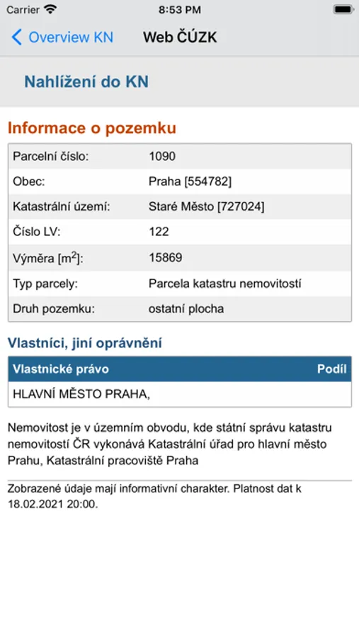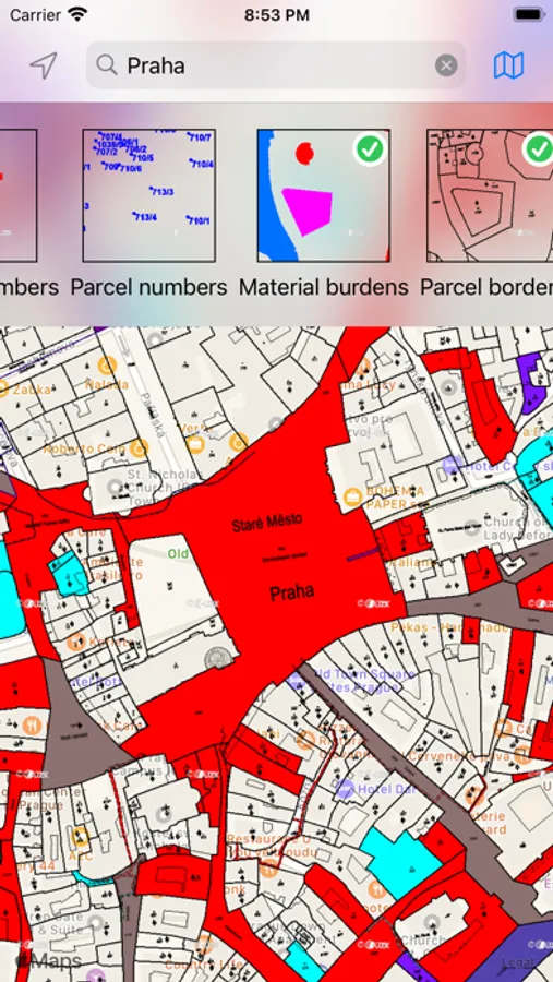 Application iPozemky is comfortable viewer of cadastral information. It is possible to find out information about objects and parcels in Czech Republic from ČÚZK. You can find attributes as area, owners, protection of area and much more.