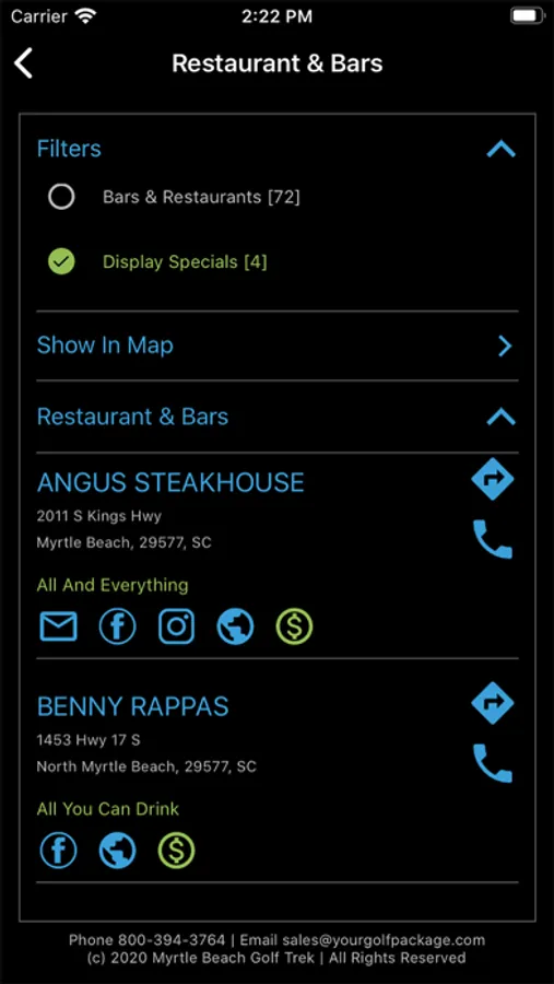 The FREE Myrtle Beach Golf App has everything you need for your Myrtle Beach area golf vacation. We make sure you don't miss any of the good stuff! This app contains information on golf courses, restaurants, entertainment, hotels, night life, and the best deals and special offers from local businesses. The app covers the entire Myrtle Beach golf area including the Brunswick County courses of North Carolina, North Myrtle Beach, Conway, Murrells Inlet, and Pawleys Island.