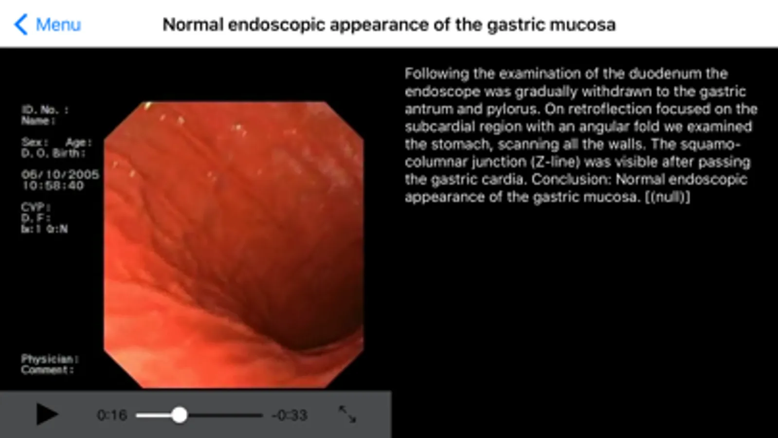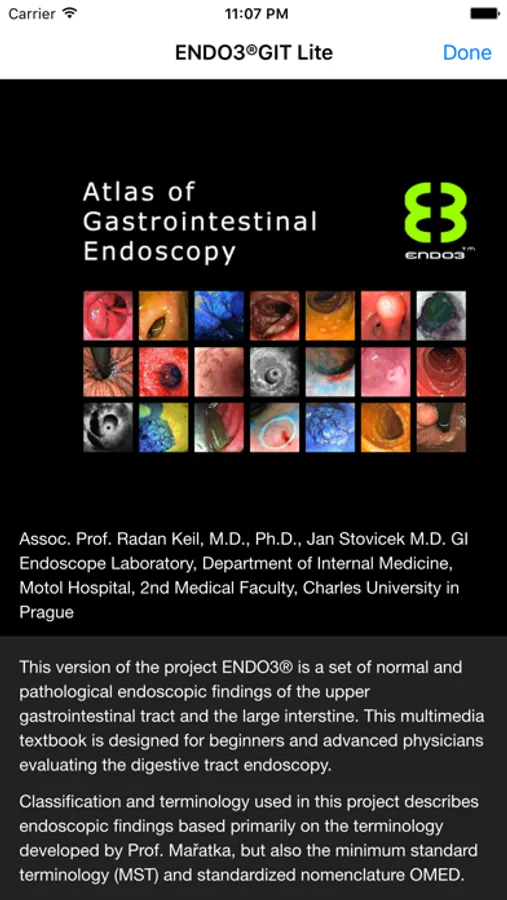 This app is a Lite version of ENDO3® Atlas of Gastrointestinal Endoscopy, endo3®GI project (ISBN 80-969617-0-5) - reference/learning tool for gastroenterologists, surgeons, internists, and other physicians evaluating endoscopy for diagnosis of gastrointestinal disease.