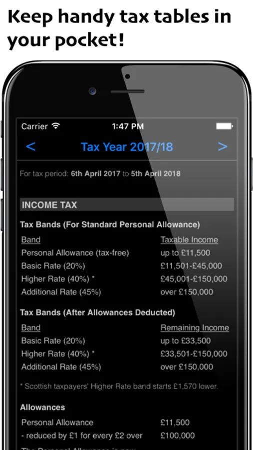 Unlike some free tax calculator apps, Tax Tool has all calculations and data built-in, so there's no need for an internet connection - use it anytime and anywhere, even if you don't have a signal!