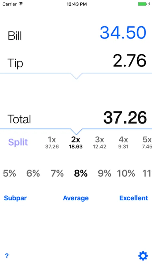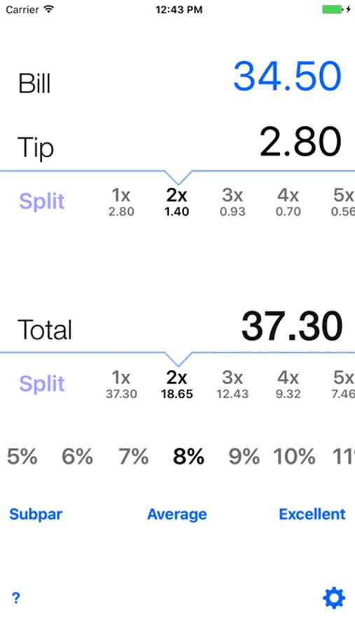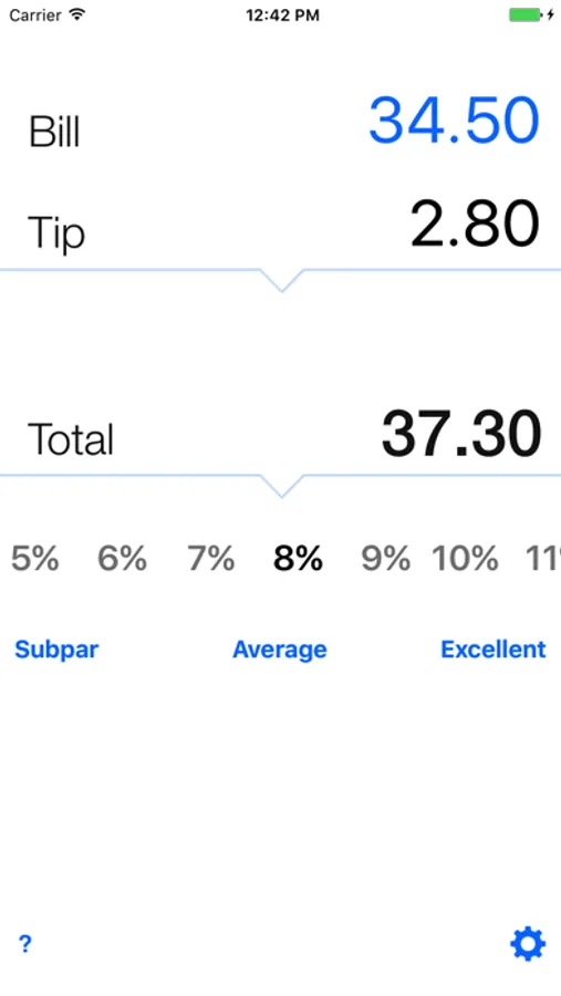 * Quick access to 'subpar', 'average' and 'excellent' tips. All customizable.
