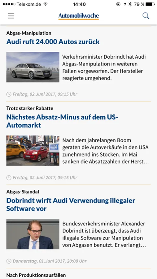 Die Automobilwoche Nachrichten -App gibt es darüber hinaus bequem im Abonnement über iTunes.