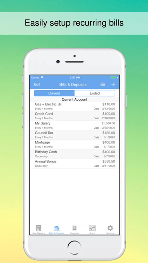 With Balance Guide you can quickly setup your recurring bills and deposits and produce a forecast of your finances for the months ahead. Later, you don't have to worry about entering all your transactions from your bank statement with the added bonus that you can easily correct your balance at any time.