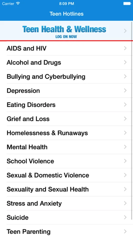 Teen Hotlines list hotlines, help lines, and web sites organized by subject. From school violence and depression to eating disorders and suicide, these national organizations can also refer teens to state and local services in their community. It is brought to you by the award-winning Web site, Teen Health & Wellness.