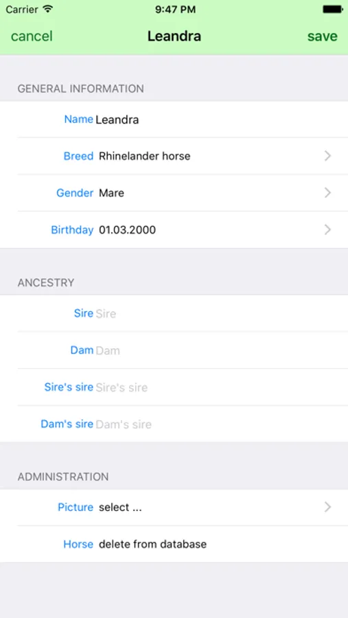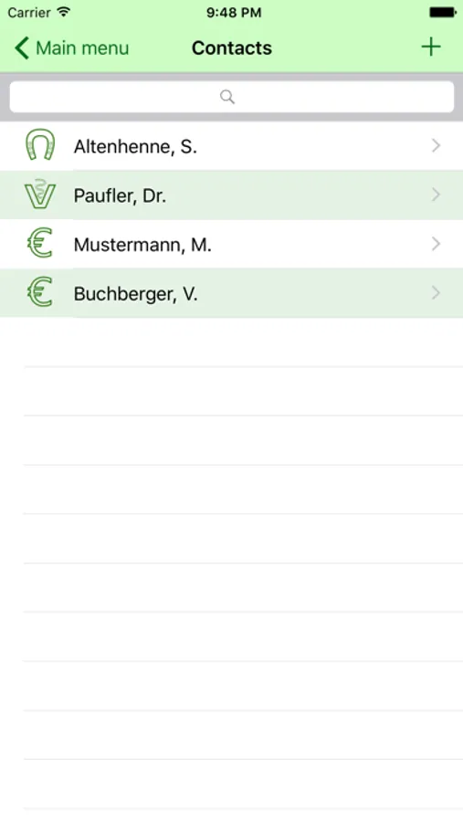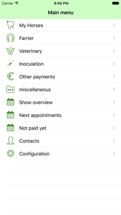 - Manage all contacts regarding your horse (veterinary, blacksmith etc.) so they don't need to be in your phones address book