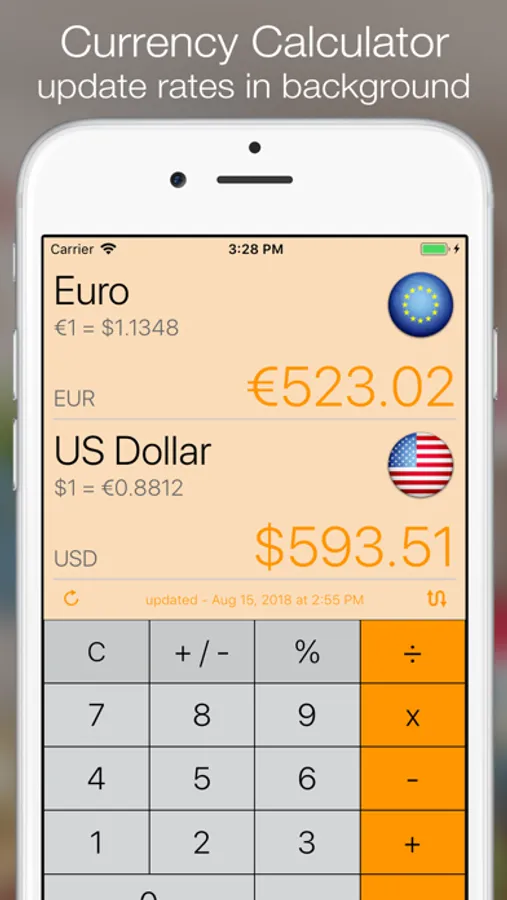 When you are traveling in a different country, most of the time your focus will be on converting the local currency back to your home currency. The built in calculator lets you focus on two selected currencies on one screen. The built in calculator remains on the screen at all times making data entry quick and easy.