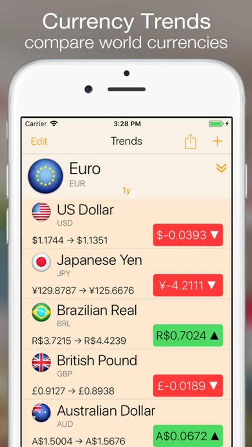 With Trends, you can select any of the 150+ world currencies and compare it to a list of other currencies to see how it has performed over time. See if your currency has strengthened or weakened. Select your time period from days to years. Export your work to an email, text, note, etc using the trend share sheet.