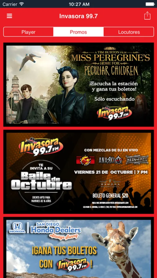 La Invasora 99.7 caracterizada por ser la estación popular con más audiencia en San Diego, toca la mejor música de los artistas del género grupero, banda, norteño. Capta la atención principalmente de personas entre 18 y 49 años de edad que buscan siempre lo más nuevo en las música popular mexicana en Estados Unidos.