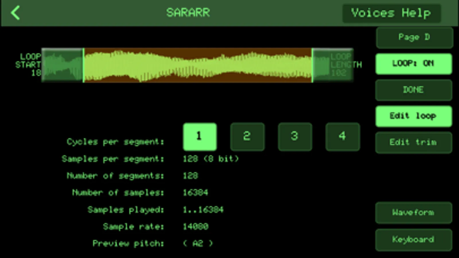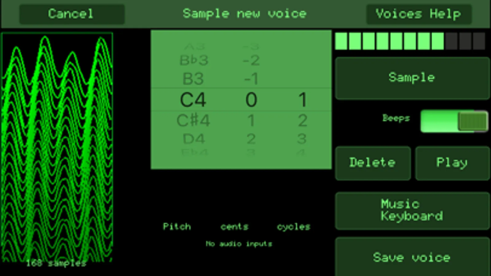 - Sample your own voices from the microphone or line in, then use them in your compositions