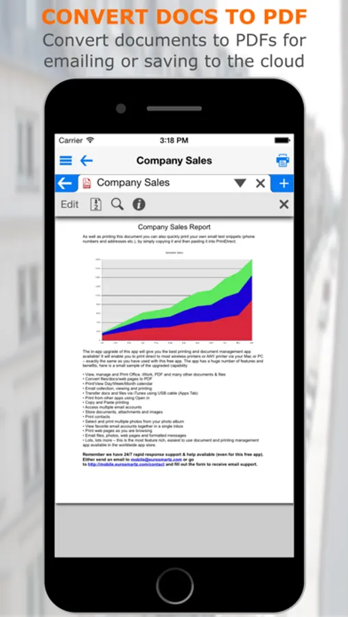 The Ultimate File Management, Transfer and Print solution for the iPhone. Print to ALL printers (Not just AirPrint Printers). View, store & print email, documents & PDFs, all major cloud servers, attachments, photos, contacts & web pages. Convert documents and images to PDF files. Also print from inside other app e.g. Safari, Photos & more