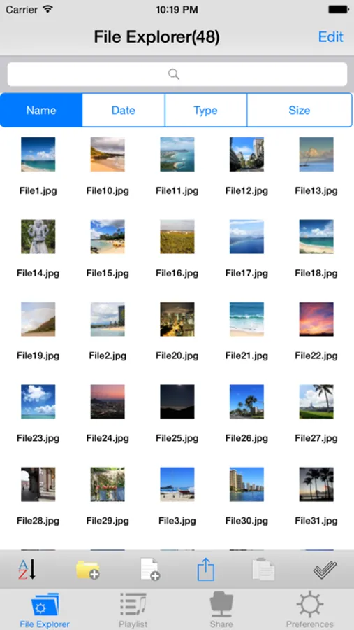 * Sorting by file name、create time and file type