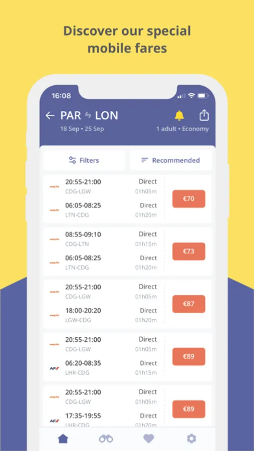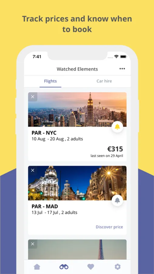 Find the best flights and get updates and advice with our notifications. Try the price notification feature: click on the bell, create an alert and relax! To notify you of each price change we will take care of it!