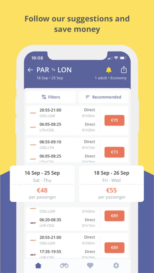 Using our app, you can take advantage of exclusive offers and competitive prices. Set a Price Alert to know when prices are going down or up, so you can book without drilling into your budget.
