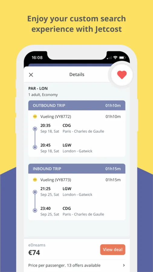 The Jetcost App will help you save time and money by finding exactly what you are looking for in seconds. You will not miss the perfect opportunity for your trip.