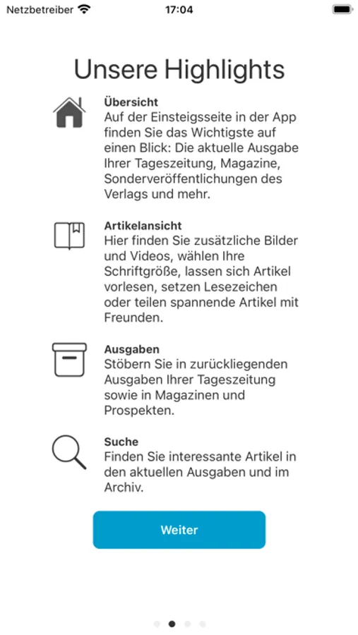 Lesekomfort: Alle Funktionen der App sind für iPhones und iPads angepasst, sodass eine flüssige Bedienung der App möglich ist. Ausgaben können im geladenen Zustand auch jederzeit ohne aktive Internetverbindung gelesen werden. Zudem verfügt die App über eine gerätespezifische Vorlesefunktion sowie Schriftgrößen-Anpassung.