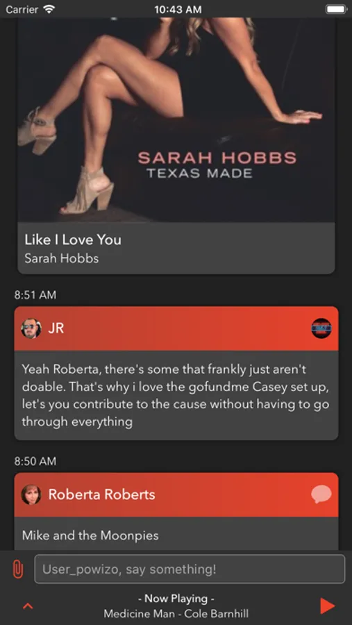 We’ve worked hard to bring you an awesome mobile experience. Yes, you can listen to The Red Dirt Rebel on the go. You can also post comments, photos and audio clips. Interact in real-time with DJs and other listeners. See what we’ve played, preview songs and even give them a thumbs up or down. It’s easy and fun.