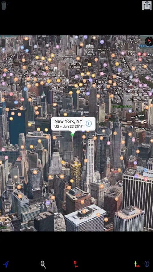 Dates of when pins are entered into the map are maintained (for journaling your travels).