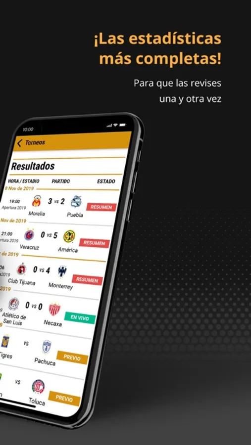 Accede a las estadísticas de tus ligas favoritas: Liga MX, Liga MX Femenil, Copa MX, Ascenso MX, Champions League, Europa League, La Liga, Premier League, Ligue 1, Eredivisie, Serie A, Bundesliga, Liga NOS, Belgian First Division.