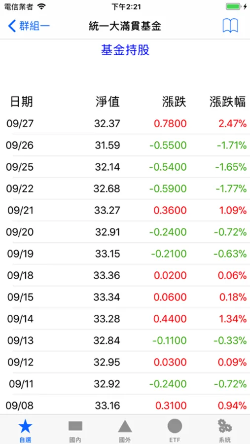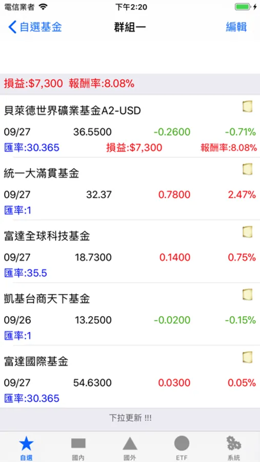 iQuery 軟體可查詢國內、外基金、ETF基金最新淨值,您可將想要觀察的基金加入群組,輕鬆記錄投資買賣歷程,即時計算投資報酬率,讓你可以隨時隨地查詢、檢視投資績效。