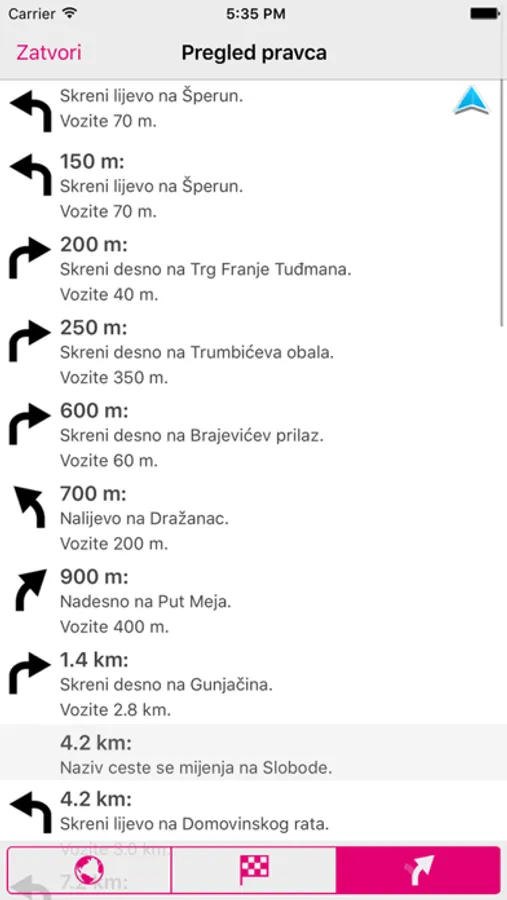 • Ruta po vašem izboru: najkraća ruta nije uvijek najbolja, birajte između više opcija poput npr. izbjegavanja autoputova, najbrže ili najlakše rute.