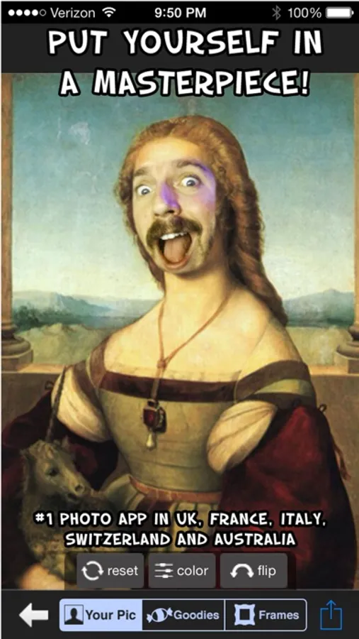 Just take a pic or choose one from your library and insert your face or your friend's into some classic art!
