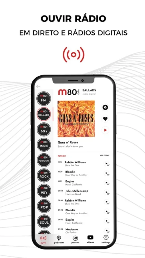 Listen to M80 Rádio and other 12 thematic channels. Check out the podcasts and videos, latest news, lyrics of your favorite songs and the playlist of the last 7 days.