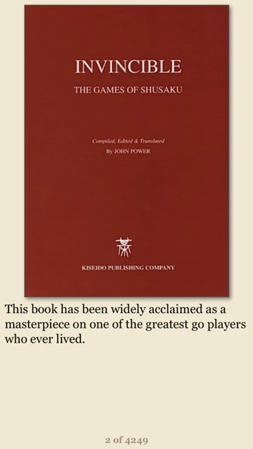 “Invincible: The Games of Shusaku” by John Power has been widely acclaimed as a masterpiece on one of the greatest Go players who ever lived. Enhanced with in-diagram replay, inline diagrams, and links to referenced games, be prepared to experience this classic in a whole new way.