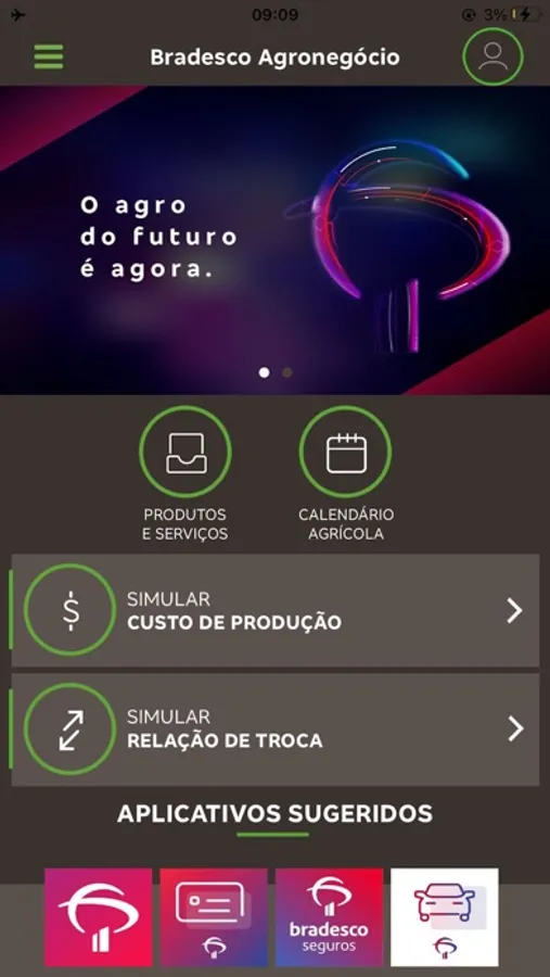 Somos o banco privado que mais opera no agronegócio brasileiro. E para acompanhar a constante modernização do campo, o App Bradesco Agronegócio apresenta informações e ferramentas úteis ao dia a dia, além de oferecer soluções de negócios exclusivas ao empresário do campo.