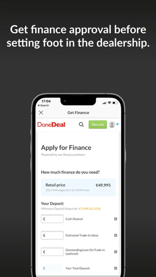 • Apply for and finance your next car directly through the DoneDeal app
