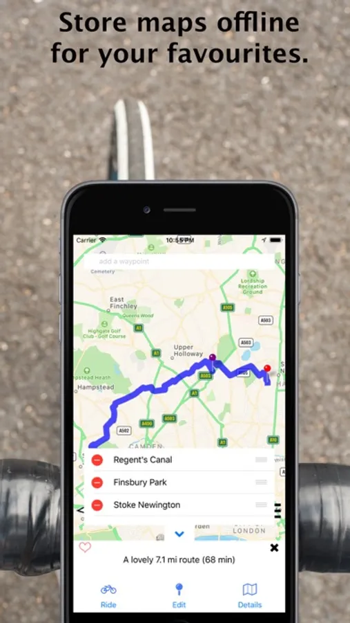 Cutting edge route planning and navigation on your wrist. Works independently of phone. Navigate with haptic feedback at a glance, store your rides as workouts! Works independently of iPhone.