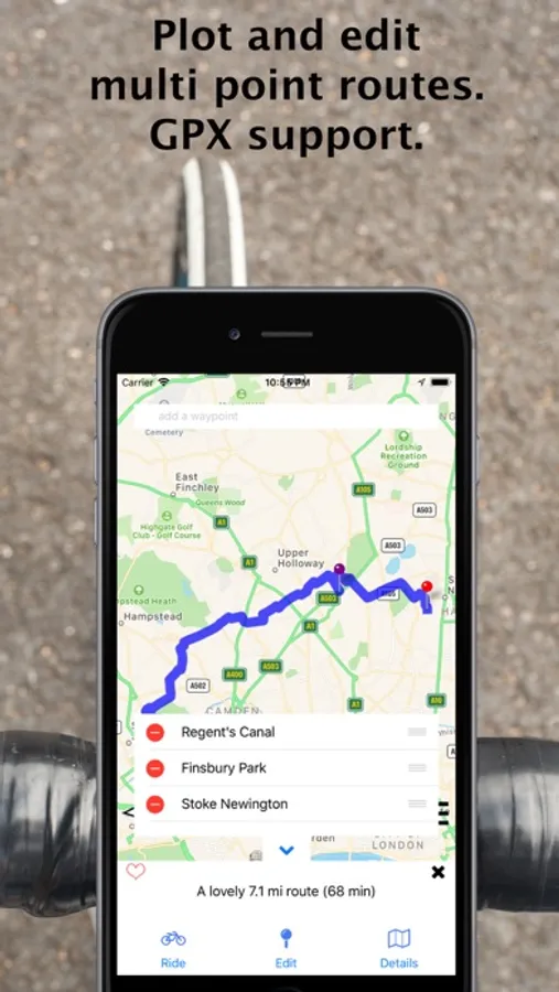 Import and ride routes from your cycling club or any source! Export routes as GPX!