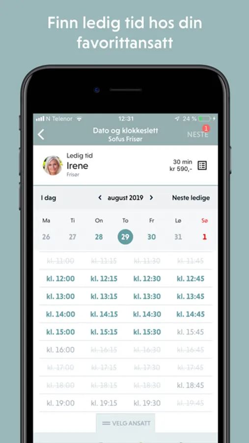 Velg din(e) favorittsalong(er) og du får full frihet til å velge mellom salongens behandlinger og ansatte, og du kan bestille time uavhengig av salongens åpningstider. Det er også mulig å endre eller avbestille timer med appen.