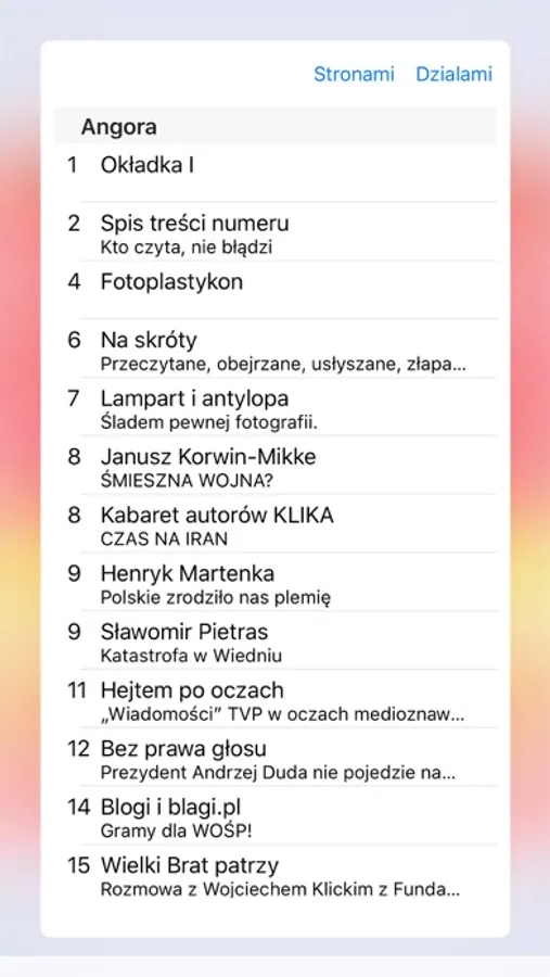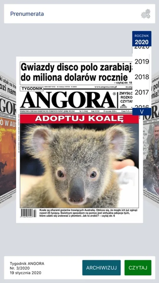 Angora publishes editorial materials: essays, commentaries, interviews. Tygodnik Angora has been present on the market since 1990. It has a position of the leader of reading and sale in its segment. Now available every week in the version prepared for the iPad.