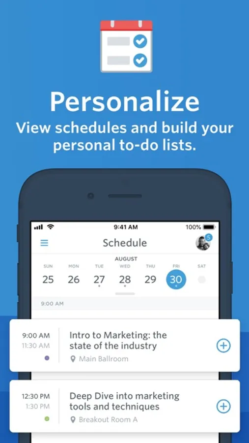 [+] Easily access speaker, sponsor, exhibitor information, and more.