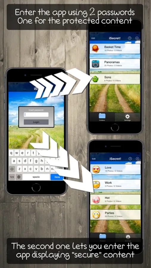 If you're forced to open the app to reveal its content(e.g. your girlfriend/boyfriend), iSecret! lets you set up a second password to access different files from the ones available with the main password.