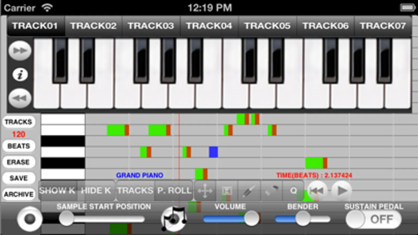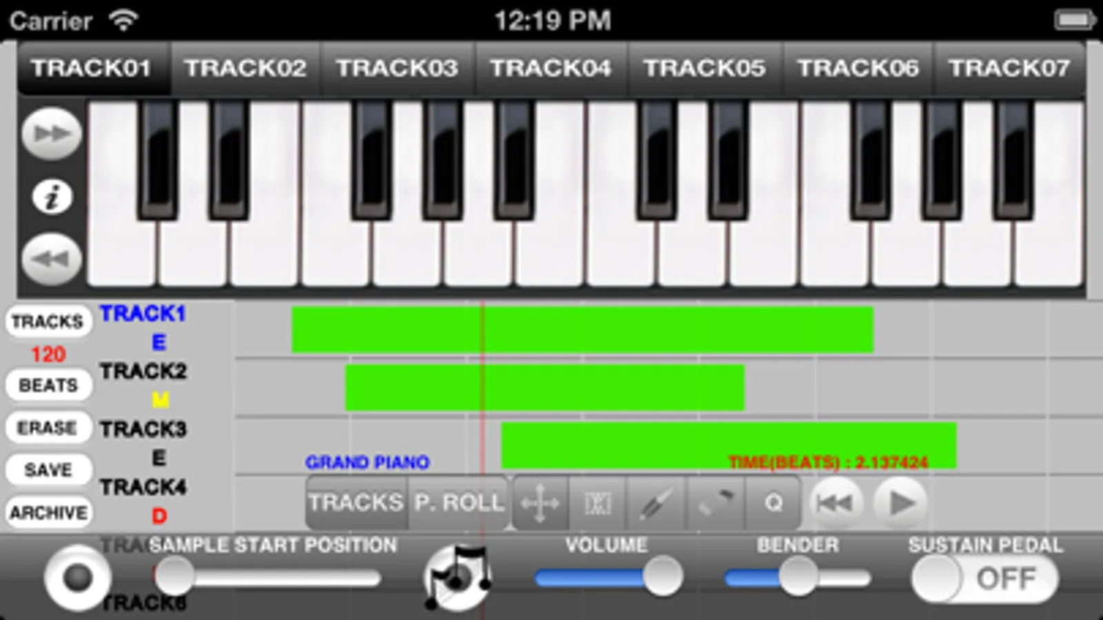 The sampleSequencer "all tracks view" and "selected track view", the ability to manually enter a note or put it through the virtual keyboard, the ability to delete unwanted notes, to touch a note and change its position, length and the type of the note (note shift), the ability of including sequencer events such as pitch bending and many other features make samplerSequencer a professional sequencer like the most popular sequencers for Mac or PC.