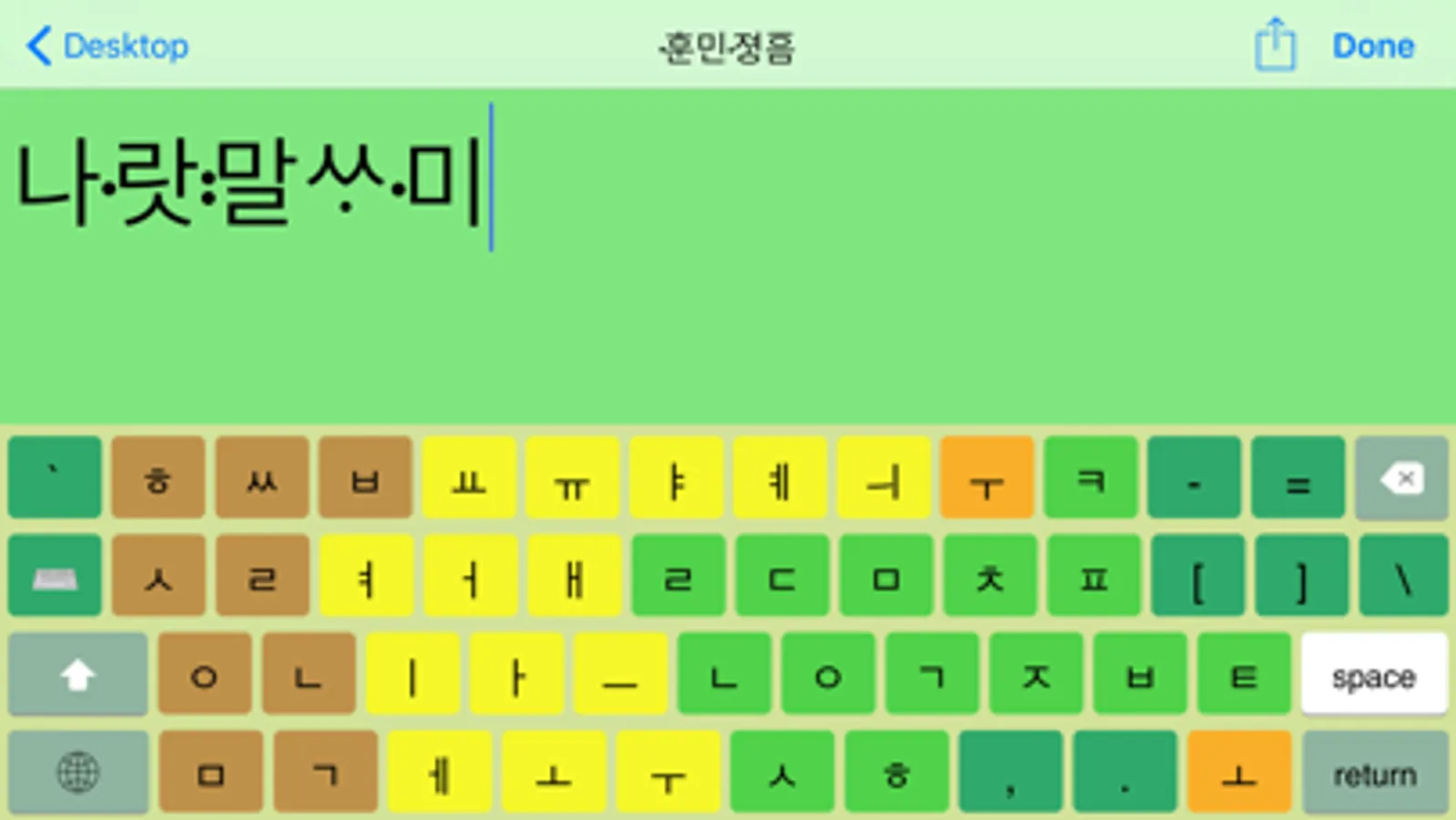 * 앱 내에서 기본 두벌식 자판으로 세벌식 입력이 가능합니다