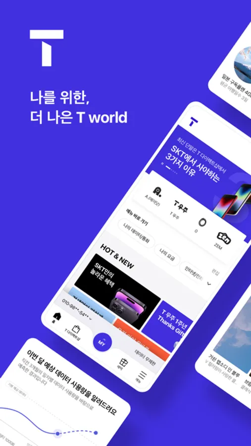 SK텔레콤 고객이라면 새로워진 T world 서비스를 기존과 동일하게 3G/LTE/5G 환경에서도 데이터 요금 없이 무료로 이용하실 수 있습니다. (단, 일부 메뉴 이용 시/해외 로밍 이용 시에는 데이터 통화료가 부과됩니다.)