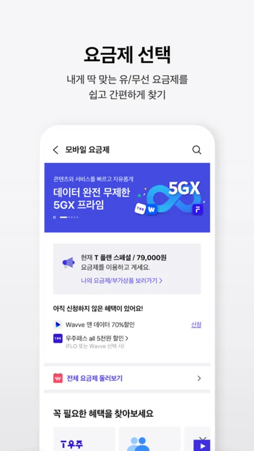 T 우주에서 다양한 구독상품을 가입하고 이용정보를 조회할 수 있습니다.