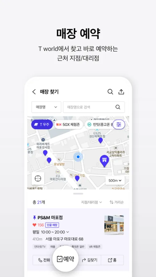지점/대리점/AS센터/임대폰 제공 매장 찾기 및 방문 예약하기, 상담하기, 자주 하는 질문, 필요서류 등 안내 정보를 확인할 수 있습니다.
