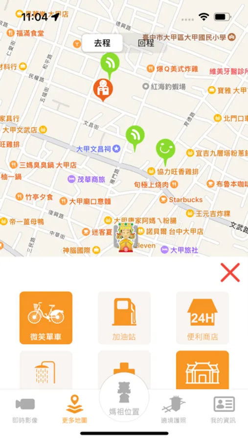 媽祖位置:讓現場民眾隨時掌握自身與媽祖鑾轎彼此之間的位置,並且讓媽祖娘娘也來瞧瞧,誠心祈福的信眾身在何方?還不快來體驗一下,測試自已是否已進入媽祖保庇的信仰圈之中了!