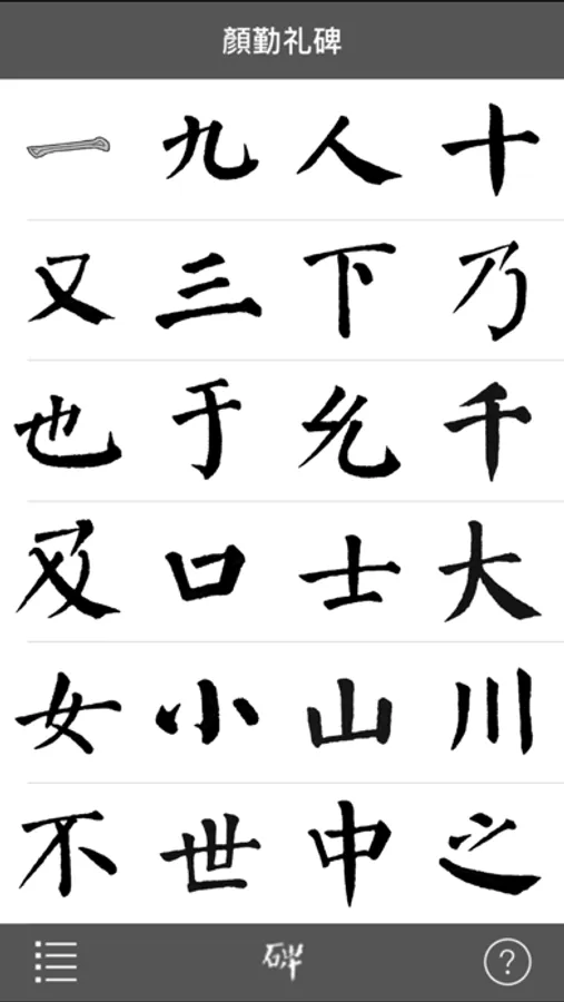 - 每個字都有書寫演示,顯示軌跡。