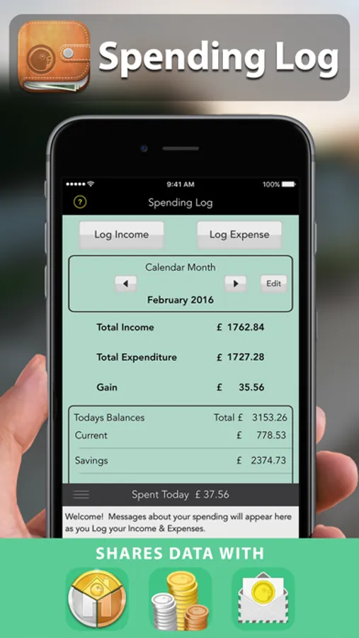 'Spending Log' logs your income and expenses so you can keep track of where your money is spent. You can keep track of your money going out of and in to different accounts and can categorise these transactions for easy analysis.