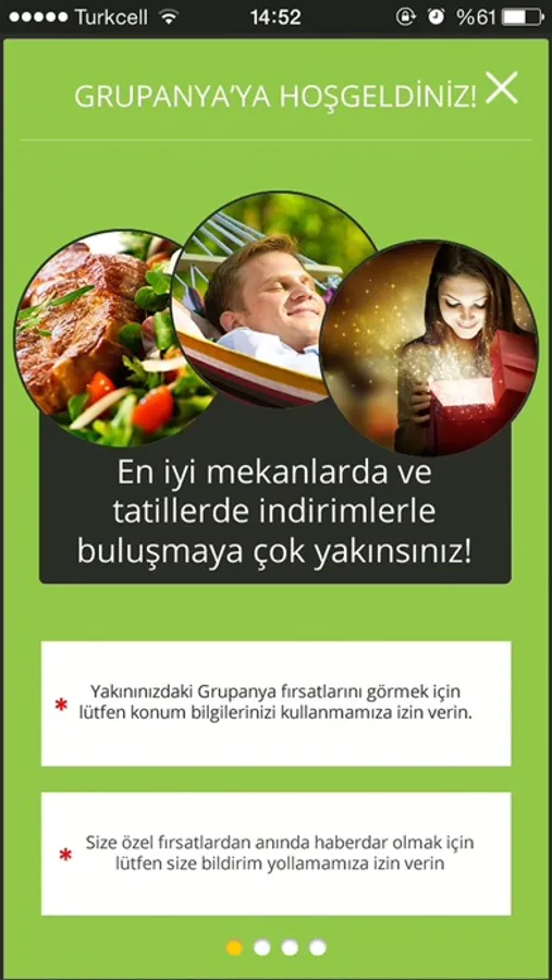 Sol üst köşede bulunan “g” ikonuna tıklayarak Grupanya’ya üye olabilir, üye girişi yapabilir ve şehrinizi değiştirebilirsiniz.