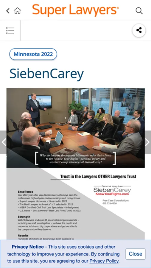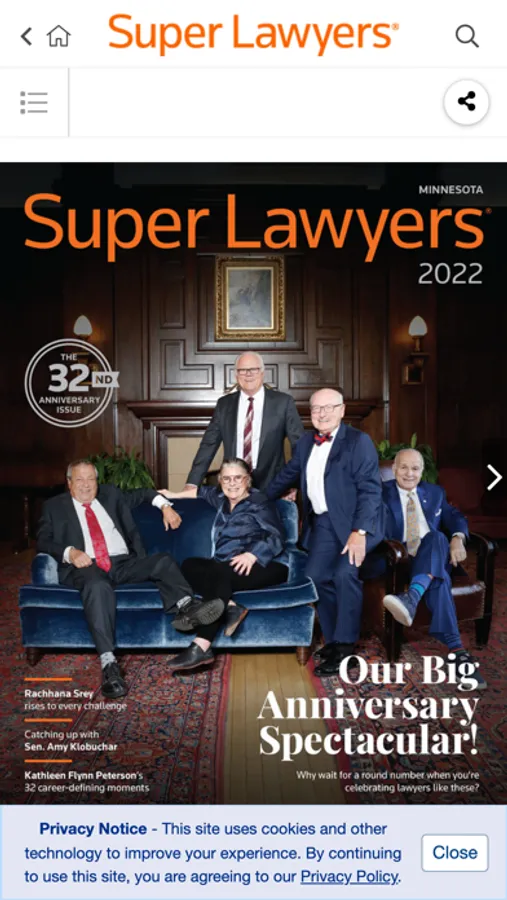 Super Lawyers, a Thomson Reuters business, is a rating service of outstanding lawyers from more than 70 practice areas who have attained a high degree of peer recognition and professional achievement. The selection process is multi-phased and includes independent research, peer nominations and peer evaluations. The objective is to create a credible, comprehensive and diverse listing of outstanding attorneys that can be used as a resource for attorneys and consumers seeking legal counsel. The final published list represents no more than five percent of the lawyers in each state.