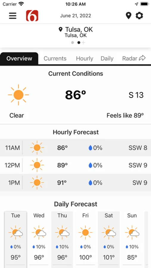 Take the News On 6 Weather team wherever you go with the News On 6 Weather app. Get the latest forecasts, radars, alerts, videos, and blogs from the Oklahoma weather experts Travis Meyer and the WARN Team.