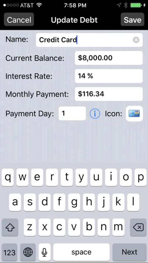 - Progress bar for each debt helps motivate you toward paying off your debts.
