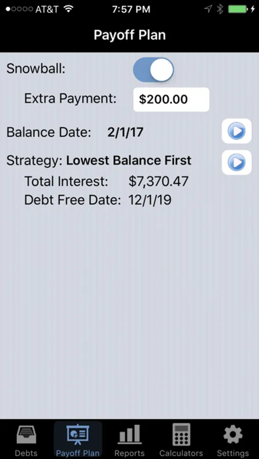 - See your total debts, debts remaining, total interest paid, total interest saving, debt payoff date, and debt payoff time savings via charts and reports.